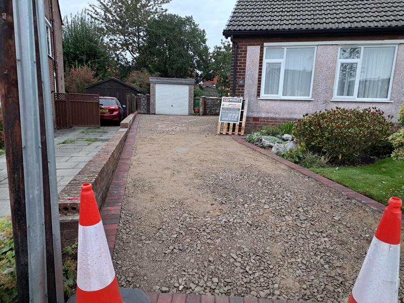 The first stage was to break up and remove all the old paving slabs. The entire driveway area was then excavated to the required depth to create a clean and stable foundation for the new surface.